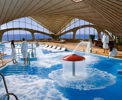Se trata de Talasoterapia Canarias (tel.: 928 12 85 05 - www.gloriapalaceth.com) del Gloria Palace San Agustín, un amplio espacio con un total de cuatro piscinas de agua marina, que incluyen una piscina dinámica, piscina de gimnasia y la gran piscina "Puesta en forma", un circuito relajante de agua de mar calentada a diferentes temperaturas (33ºC/37ºC) con 33 estaciones de hidromasaje, entre ellas equipos de natación contracorriente, asientos y tumbonas con microburbujas, chorros de agua sobre los hombros, muslos, abdominales, piernas y plantas de los pies, cuellos de cisne y cascadas y sillones con burbujas.